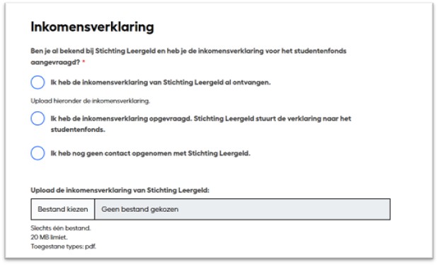 De bevestiging van Stichting Leergeld kan bij punt 2 ge-upload worden.